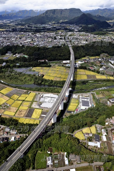 片品川両岸に広がる河岸段丘の上に架かる片品川橋 空撮